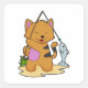 Cat as Fisher with Fishing rod & Fish Square Sticker