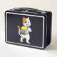 This is a standard metal lunchbox that appears to work just fine. We designed this box ourselves with an uploaded photo and custom text on the front and back. It looks absolutely beautiful except the front of the lunchbox is not centered like it shows in the photo. The print borders don't align with the inset flat part of the box where the preview photo online showed it perfectly centered in there. The back looks nice and centered though.