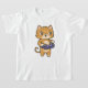 The t-shirt feels and looks great quality, a good thick cotton. It will be a little big for my son, but that means he will be able to wear it and not out grow it too soon. The print was as described on the order when personalised. True size, shape and colour T-shirt- thanks.