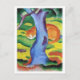 A fine art postcard featuring the painting, Children's Picture - also known as Cat Behind a Tree (1912) by the German expressionist artist Franz Marc (1880-1916). A ginger-coloured cat sleeping behind a blue tree in the grass. Marc used primary colours in his expressive paintings. He was also a member of the Blue Rider Group of artists.