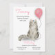Adorable watercolor Ragamuffin or rag doll Cat with with party ballon and floral wreath hairpiece. Great for a birthday party for kids, adults or a real cat!