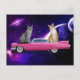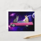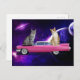 CAT IN SPACE ON A PINK CADDY POSTCARD