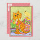 Send a unique, uplifting springtime greeting with this colourful folk art postcard to celebrate Easter or any springtime holiday or special occasion. You can personalise the message on the back of the card or use the default "Happy Easter" text. In this colourful, whimsical artwork, This cute orange tabby cat sits next to a pot of tulips with his tail curled around a beautifully decorated egg. His friend the chick sits on top of the egg. The entire images is bordered by gold and a pink colour that matches the heart motif on the back of the card.