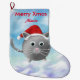 Cute Silver Grey Cat in the snow Christmas Stocking with bright red back. Personalise writing for your own needs.