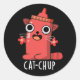 Cat-chup Funny Ketchup Pun Dark BG Classic Round Sticker