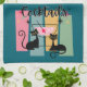 We've created a fun and colourful mid-century design for this kitchen towel so you can utilise as a fun bar towel. This one features two mid-century black cats with big eyes sitting in front of a cocktail. Mid-century pattern with starbursts in the background. You can easily change the background colour to any colour your desire, prior to placing into your shopping cart. Note that the design is only on one side of the towel.