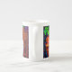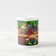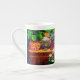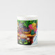 Bone China Mug featuring Louis Wain’s animal painting Master of Cat College (1860-1939). A thoughtful white cat with striking blue eyes sits ponderously next to a vibrant assortment of beautiful flowers. The majestic cat college looms in the background underneath a pink and blue sky. A wonderful gift for cat lovers and English art.