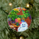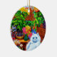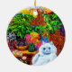 Ornament featuring Louis Wain’s animal painting Master of Cat College (1860-1939). A thoughtful white cat with striking blue eyes sits ponderously next to a vibrant assortment of beautiful flowers. The majestic cat college looms in the background underneath a pink and blue sky. A wonderful gift for cat lovers and English art.