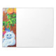 Notepad featuring Louis Wain’s animal painting Master of Cat College (1860-1939). A thoughtful white cat with striking blue eyes sits ponderously next to a vibrant assortment of beautiful flowers. The majestic cat college looms in the background underneath a pink and blue sky. A wonderful gift for cat lovers and English art.