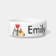 I love the pet bowls I bought for my 3 Granddogs when they come over my house. They are the perfect size to feed them when they are here for a visit. The design of their names on the bowls is great!