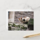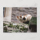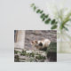 Cat crouching on rock wall postcard
