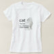 A dictionary definition for CAT in black text with a white Persian cat sketch