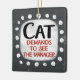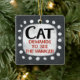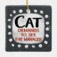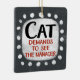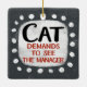 An cute and funny typographic animal design that says "Cat Demands To See The Manager". It features black and red text on a white rectangle with funky, playful white dots surrounding it, all on a grey background.