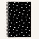 Add a touch of playful mystery to your writing with this charming spiral notebook featuring a minimalist black cat doodle pattern. The whimsical design is filled with cute cat faces, tiny paw prints, lightning bolts, and stars, creating a stylish yet fun aesthetic for all ages. It’s the perfect companion for cat lovers and dreamers alike, providing a creative space for your notes, sketches, and daily feline-inspired thoughts.
