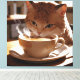 Cute AI-Generated Art of a cat drinking coffee from a cup, capturing its adorable and whimsical charm.