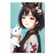 Enter a realm of whimsy and enchantment with our "Cat-Eared Girl Holding a Cute Cat" artwork, an illustration capturing the magical bond between a cat-eared girl and her delightful feline friend. This artwork beautifully blends fantasy and reality, celebrating the essence of love, harmony, and friendship, creating a charming and inviting ambiance in your home decor.
