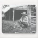 Cat eating out of a coffee can with a cowboy watching on the Pitchfork Ranch near Meeteetse, Wyoming.