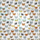A collection of funny cat face doodles, with fur coloured in unique shades and markings and arranged into a repeatable pattern. These cat faces were originally hand drawn with pen & pencil and then transferred to a vector format for large scale prints!