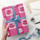 Cat Face Pink Gingham Pattern Cute Wrapping Paper