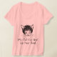 Got a secret heroic cat or even a little bully cat? then this tees for you. Cute graphics of a black cat's face decorates this t-shirt, with black custom text reading, My Cat Can Beat Up Your Dog!