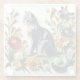 Cat Faux Paper Quilling Cat and Flowers Glass Coaster