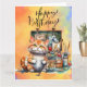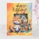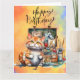Cat Fishing lovers birthday watercolor Card