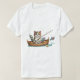 The "Cat Fishing on a Canoe" design captures a serene and whimsical scene of a fluffy tabby cat perched confidently on a wooden canoe. The cat, wearing a small straw hat tilted jauntily on its head, holds a fishing rod with one paw, its tail curling lazily behind it. The canoe drifts on a calm, glassy lake reflecting the warm hues of a setting sun, with gentle ripples spreading outwards. A few small fish leap playfully near the canoe, while dragonflies hover in the golden light. The background features lush green trees and distant mountains, completing the tranquil and enchanting atmosphere