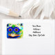 Return Address Labels featuring Louis Wain’s animal painting Cat Flower Eyes (1860-1939). A rainbow cat widely grins. Blue flowers cover his eyes. A wonderful gift for cat lovers and English art.