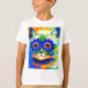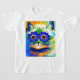 T-Shirt featuring Louis Wain’s animal painting Cat Flower Eyes (1860-1939). A rainbow cat widely grins. Blue flowers cover his eyes. A wonderful gift for cat lovers and English art.