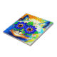 Tile featuring Louis Wain’s animal painting Cat Flower Eyes (1860-1939). A rainbow cat widely grins. Blue flowers cover his eyes. A wonderful gift for cat lovers and English art.