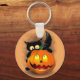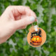 Cat Fun Halloween Character biting a Pumpkin Key Ring