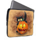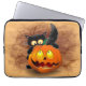 Cat Fun Halloween Character biting a Pumpkin Laptop Sleeve