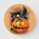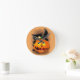 Cat Fun Halloween Character biting a Pumpkin Round Clock