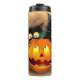 Cat Fun Halloween Character biting a Pumpkin Thermal Tumbler