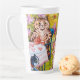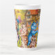 Latte Mug featuring Louis Wain’s animal painting Cats Relaxing in the Grounds at Napsbury (1860-1939). A smiling cat pours milk into teacups while watching six smaller cats drink milk, eat sweets, and play games in a garden. A wonderful gift for cat lovers and English art.