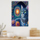 Cat Gazing Under a Starry Sky at Midnight Poster