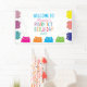 Modern, trendy, kawaii, cute, colourful Purrfect Birthday party welcome banner, with funny cat pattern.