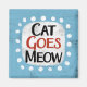 "Cat Goes Meow" is a fun text design with a white accent shape surrounded by white whimsical textured dots.