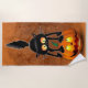 Cat Halloween Scared Cartoon on Pumpkin Beach Towel