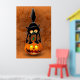 Cat Halloween Scared Cartoon on Pumpkin Poster