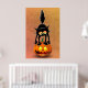 Cat Halloween Scared Cartoon on Pumpkin Poster