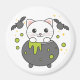 happy halloween The cat with Halloween cauldron. Funny animals in the cauldron with bats. A fun Halloween costume for babies and children who love cats.