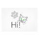 Hi text and drawings of a cats face with green eyes and a paw. Cats greetings. Wall art, prints, posters, canvases for fun and laugh