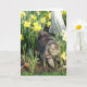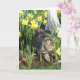 Nature animal and floral photography, of a cat and daffodil flowers, teams with a birthday greeting for this card.