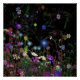 Cat hiding in the middle of a flower bed, design on a poster.