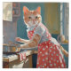 Cat housewife cooking dinner. Cute cat at the kitchen stove.