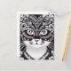 Postcard in an image of a cute cat, wearing an elegant Mardi Gras mask in black, white.and light grey.