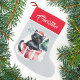 Merry catmas Christmas stocking with personalised name for cat people, cute green eyed black cat inside gift box Christmas tree, Christmas gifts for cat lovers.