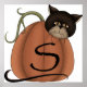 Cat in a pumpkin with the letter s. This design looks really effective on these Poster