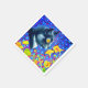 Napkins featuring Louis Wain’s animal painting Cat in Sea of Flowers (1860-1939). A black and white cat with golden eyes smells yellow flowers. In the purple background are blue flowers. A wonderful gift for cat lovers and English art.